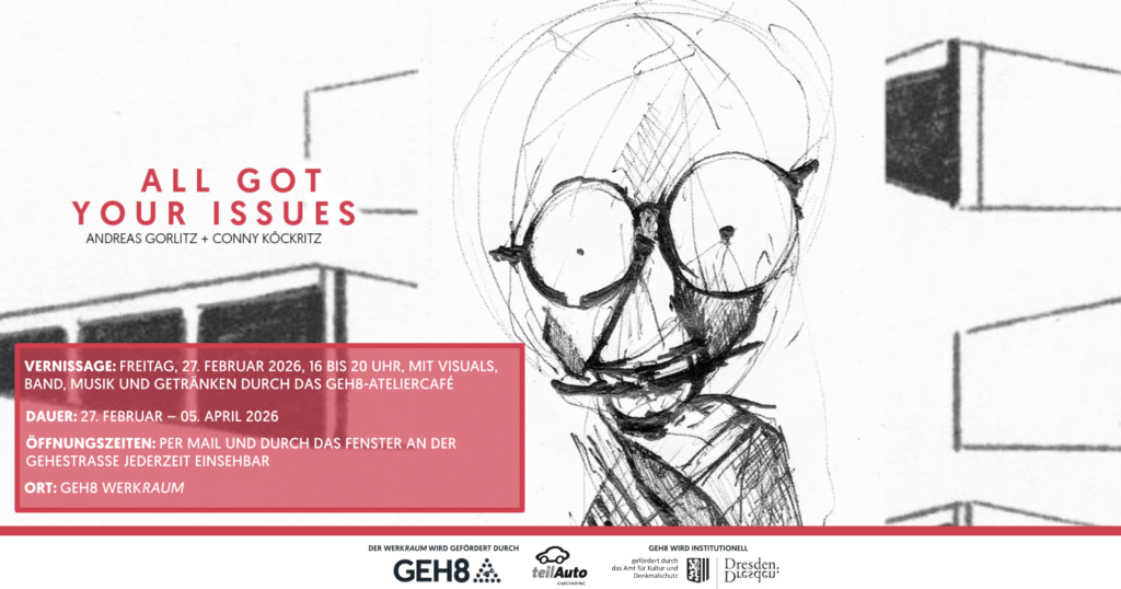 Die Ausstellung [ɡaˈraːʒə] öffnet im Farbatelier des Garagencampus, Zwickauer Straße 164, 09116 um 15 Uhr ihre Türen.